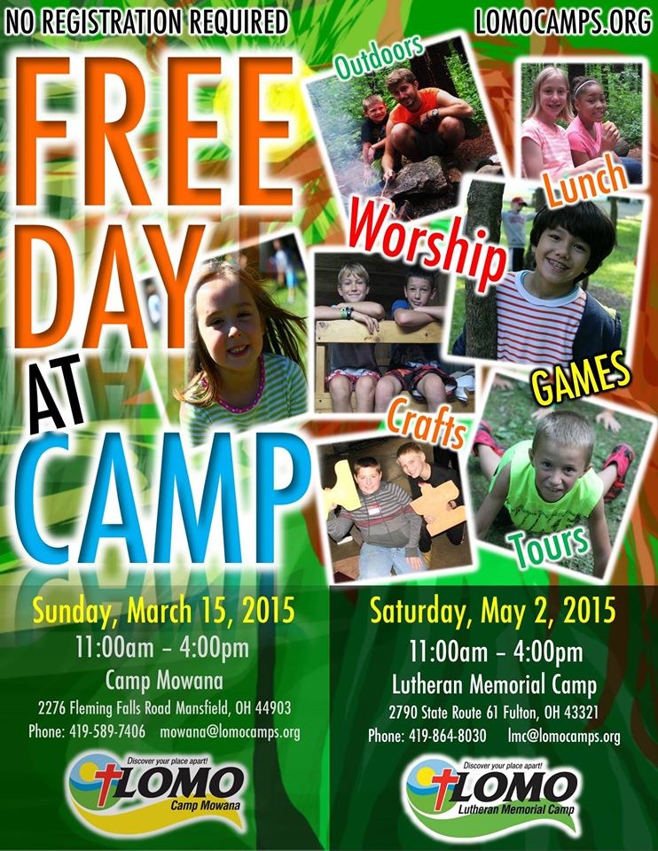 Our youth (and their families too if they like!) are going to check out Lutheran Memorial Camp! We will meet at SPLC at 9 and leave for the day of FUN. Next fall our JLL and DIRT youth will be invited to attend some weekend retreats at Lutheran Memorial Camp and the Day at Camp will give us an introduction to the camp experience!