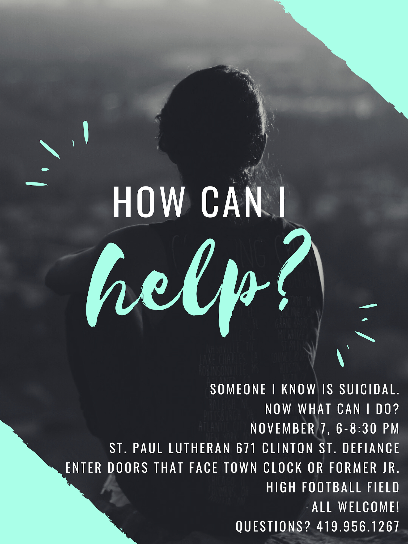 Join us at St. Paul Lutheran for a speaker, presentations by therapists, a pastor, and Teen Pep to give youth and adults the skills to respond to a friend who is experiencing suicidal thoughts. Develop skills to know what to do in dark times to help others and yourself.